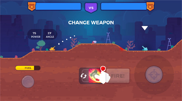 1、采用漫画游戏风格,包含多种不同地形的关卡,探索最佳战斗位置,进行炮弹射击。