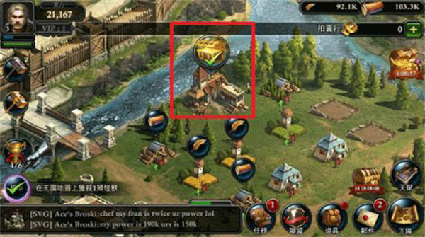 当你的农场或是锯木厂可以采集时,会出现提示图案在该建筑上方,在物资生产区的部分,有一个免费礼物可以领取,记得一段时间就来点一下领取。有时候建筑的头上会出现一个女人的对话框,点下去会看到她的一段对话并获