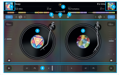 Android的主djay界面由两个虚拟音乐组、交叉阅读器、传输组成控件,以及快速访问音乐库浏览器。如果你熟悉现代DJ或设备,你会认识到其中的许多功能。