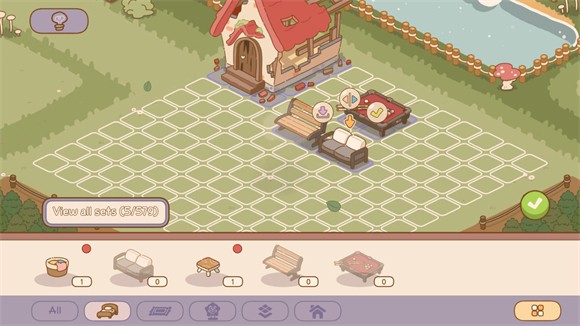4、完成教程后点击右下角的锤子按钮可以装饰自己的家园,点击物品就可以将其放置带对应位置。