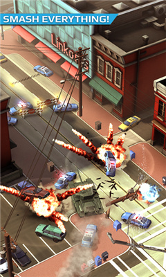4、游戏中没有传统意义的关卡,每次游戏都是在相同的城市进行,玩家将一直在街头制造破坏,将路上的汽车弄翻,摧毁警方设置的障碍等等。