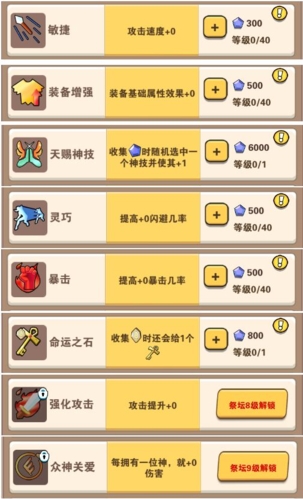 续航类的也增加了两个,配合独角兽的回复增强,效果还是非常不错的,因为祭坛要求的13级比较高,所以0氪党只能中后期点出来,氪金党可以提前升上来等级提高前中期过图的续航能力
