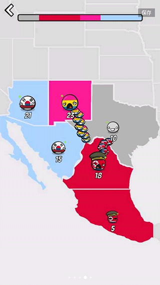 国家球战争是一款策略战争类游戏。在游戏中,玩家会遇到不同的国家势力,每个国家都拥有其独特的小球标志。玩家可以挑选不同的国家进行游戏。每个势力都有其独特的优势,玩家需要仔细观察战场布局,精心规划士兵的行进路线,尽可能多地占领区域,不断扩大自己的领土。当玩家成功占领所有敌方领土时,即可赢得该局游戏的胜利。