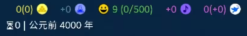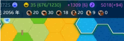 接着往下看,最左面是游戏时间,再往右是【战略资源】(在完成相应科技后可看到)。