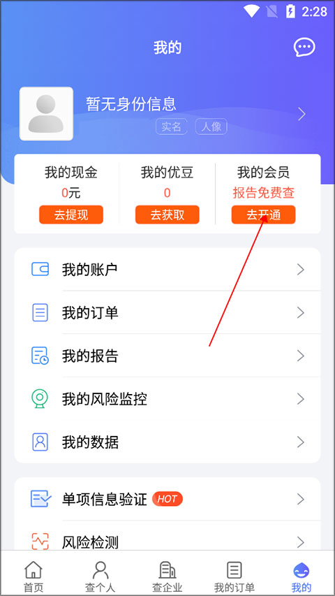 2、第二步,接着进入我的界面后,我们点击上面的去开通选项。