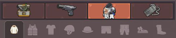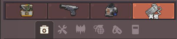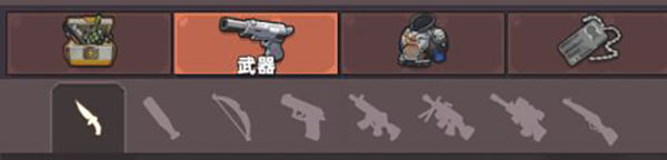 武器:按照图片顺序,分别为:利刃,钝器,弓弩,轻武器,步枪,重武器,狙击枪,散弹枪。