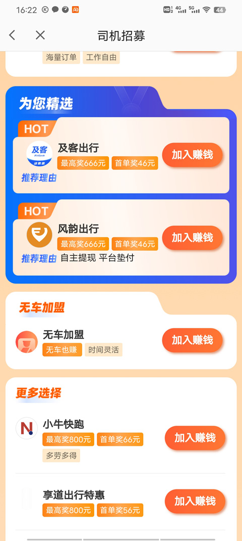 3、选择一个你想要加入的司机平台,点击进入;