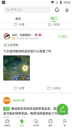 3、返回主界面,点击动态,在这里你可以看到更多大神的动态信息;
