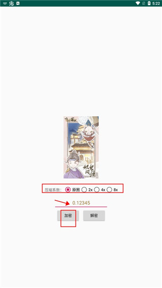 3、然后选择压缩系数,输入带有小数点的秘钥,然后点击加密;