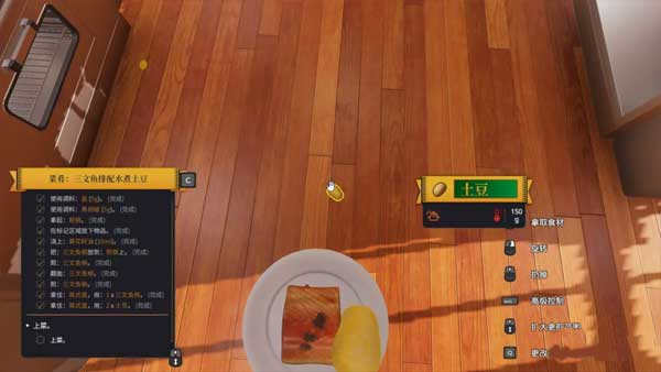 4、分清煎、烤、烘焙的区别,在我的印象里肉放在铁板上基本都算是烤,但是在游戏里却行不通,【烤牛肩胛肉配烘焙土豆】要求把100gX2的牛肩胛肉烤180S,我先后用了炉子旁边的铁板与烤箱都无法达成5星,直到用了炸炉旁边的烧烤炉……