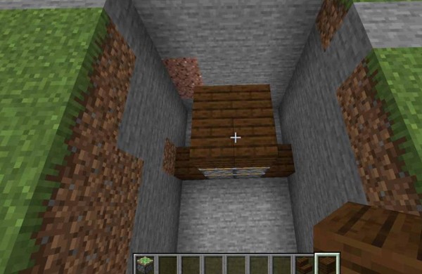 6、最后我们再铺设木板进行遮盖,然后放置一个按钮,这样就完成了我们的地板机关啦!
