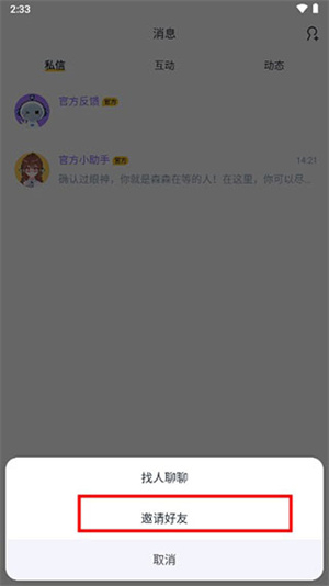 3、在弹出窗口中,点击“邀请好友”栏目按钮。