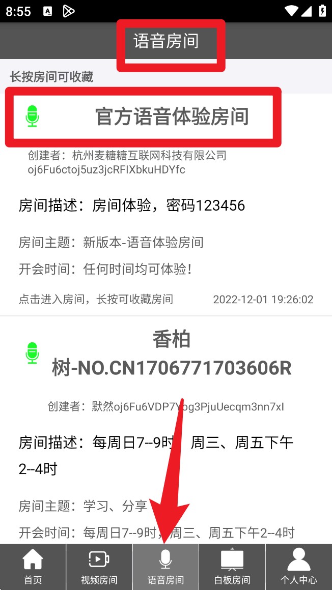 3. 在「语音房间」页面中,也可以浏览和创建用户发起的语音房间,非常适合进行语音交流。