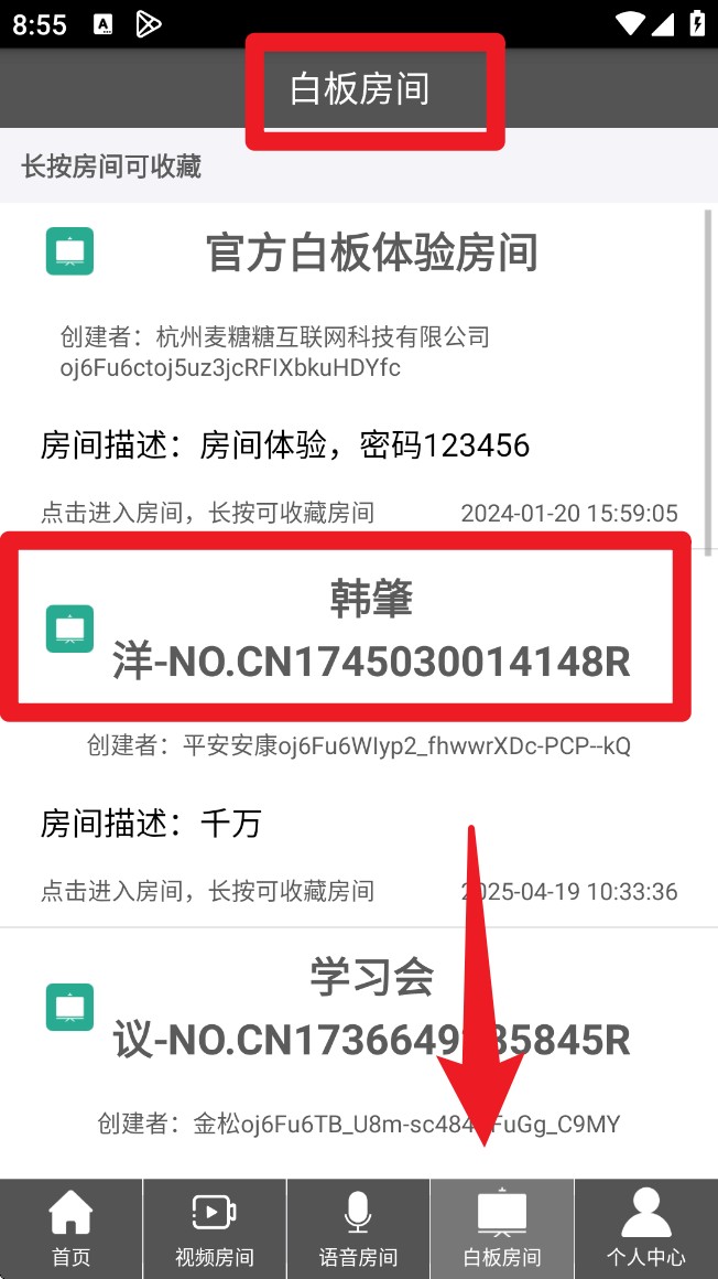 4. 点选下方「白板房间」可进入图文互动区,适用于远程讲解、演示或头脑风暴等协作会议。