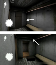 这是出生的房间,当你靠近床时,可以通过点击右上角躲到床下,衣柜也是一个可以藏身的地方。在床头柜左侧的抽屉里有三行红字:“离开这个房子”,而右侧的抽屉通常不会出现任何物品(至少我没有遇到过)。在这个房间里,只有花瓶和放置花瓶的桌子是可以被推倒的,你还可以拿起花瓶并将其扔在地上。到了第二天,出生房的门会被锁住,因此你需要通过扔花瓶或推倒桌子来吸引奶奶过来,之后再迅速躲进床下或者衣柜里,等待奶奶离开。
