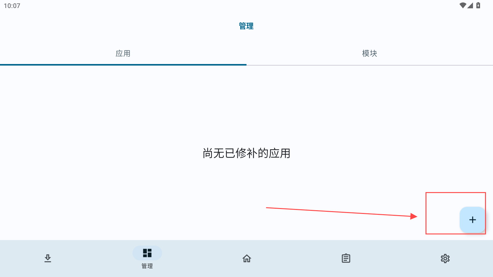 2、然后打开进入LSPatch框架,在底栏找到“管理”并点击。