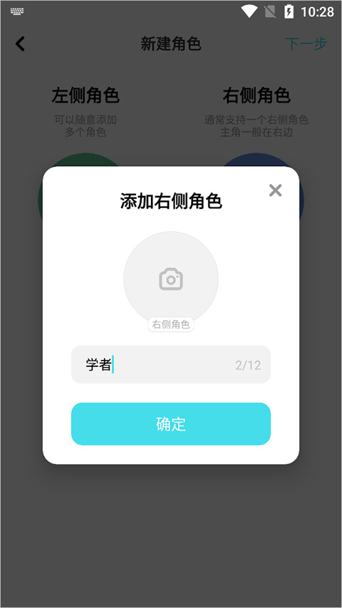 4在弹出的窗口中设置头像,并输入角色名称后点击【确定】按钮。