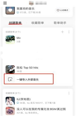 3在创建歌单的下拉菜单中,找到导入外部音乐的选项。