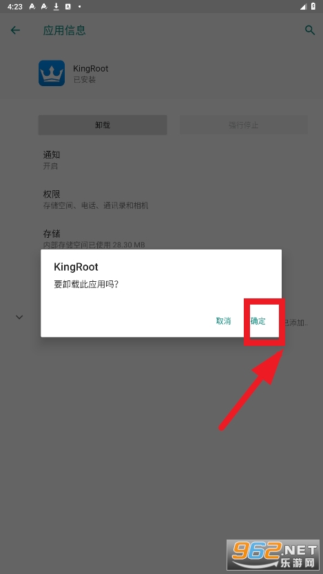 5.确认卸载。卸载之后,手机将恢复到无root状态。