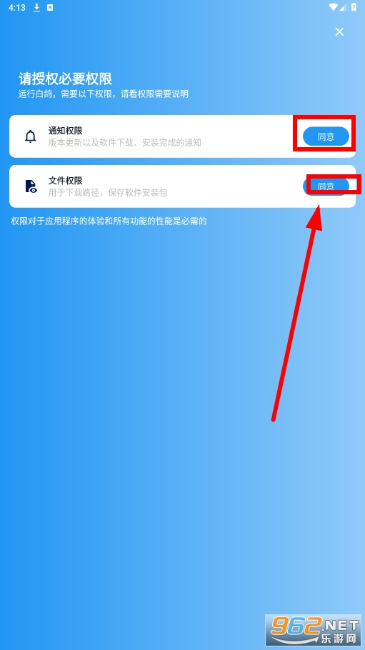 打开白鸽软件库,同意相关权限