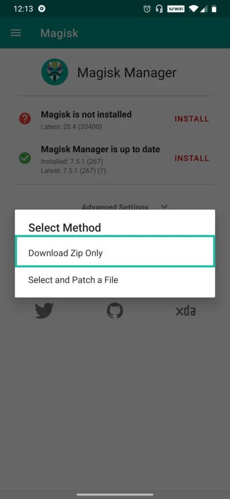 没有 TWRP 支持的设备安装 Magisk 的步骤要稍微复杂一些: