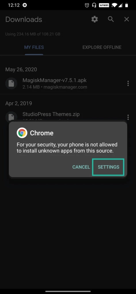 Magisk Manager无法保存在可采用的存储中。否则,超级用户将无法工作。仅需要将其放置在设备的内部存储中。
