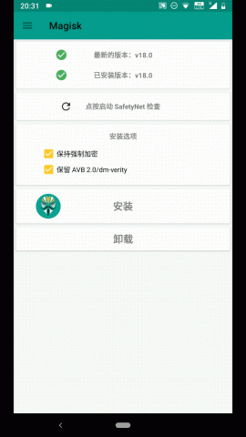 Magisk还将会移除 system verify和 forceencrypt(二者均可以通过.magisk文件手动配置), 并且修改sepolicy使得脚本运行正常。