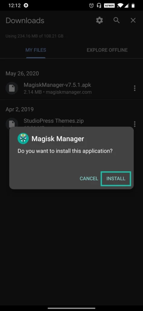 打开应用程序,现在您的Android设备上已安装Magisk Manager应用程序