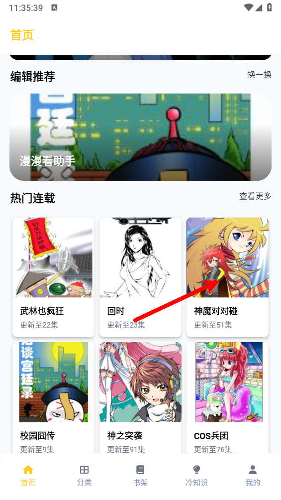 打开漫漫看助手,进入首页选择喜欢的漫画。