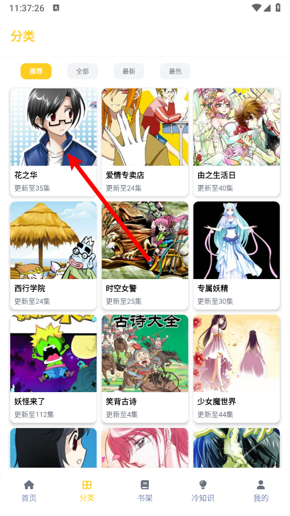 进入软件,在分类页面滑动选择所需加入的漫画。