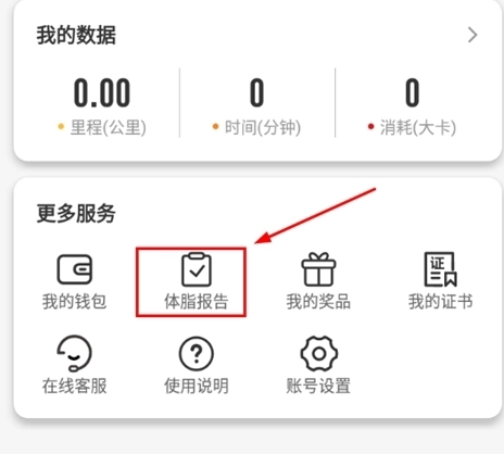 绑定体脂秤设备后,进入“我的”个人功能界面,选择并点击“体脂报告”。