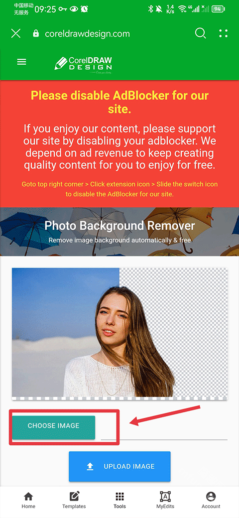进入功能页面后,点击“Choose Image”按钮上传图片。