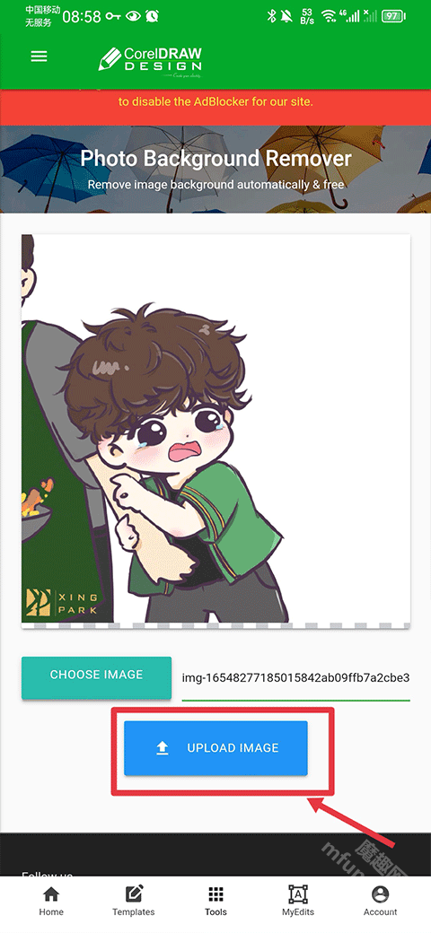 确认选择后,点击“Upload Image”按钮即可完成上传操作。