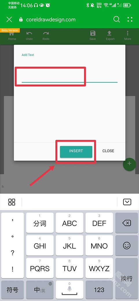 编辑文字后点击insert。