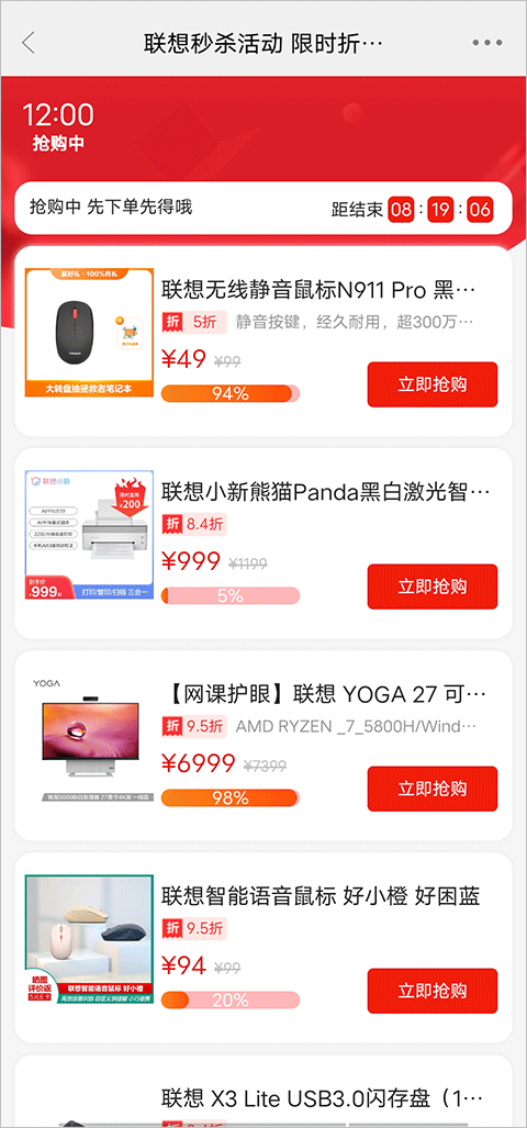 2、进到页面可以看到有很多正在秒杀抢购的产品,点击右侧的“立即抢购”就可以进抢购啦。
