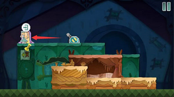 4、将带有拉杆的绿色方块移过来,移动到绿色方块上按下拉杆。