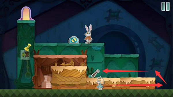 2、扑克兵会被球砸晕,趁着球的间隙快速移动到右上角的门里。