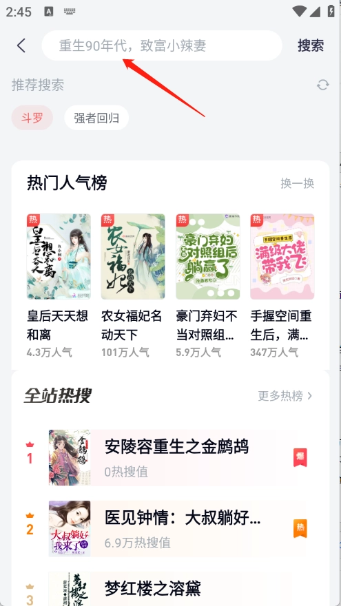 排行榜页面将小说根据当前热度进行整理排序。