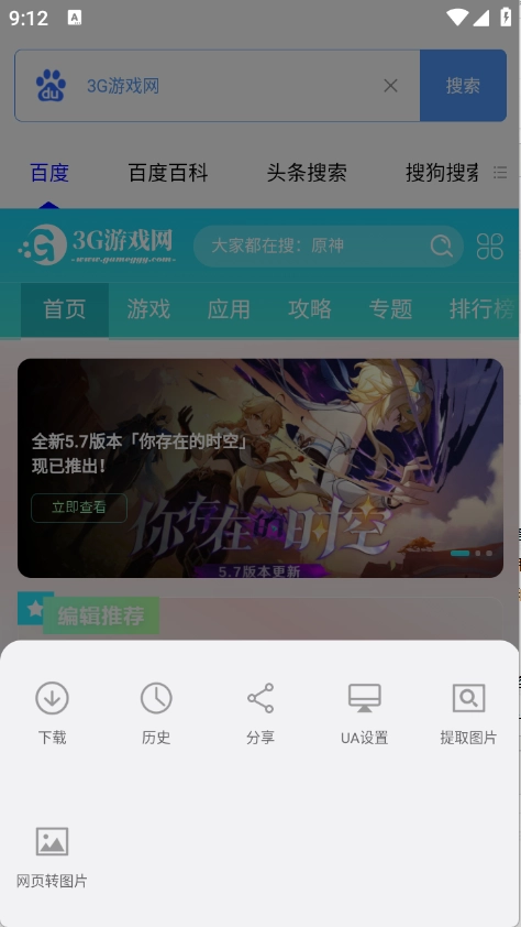 进入首页后,挑选需要使用的浏览器,系统默认的是百度浏览器。