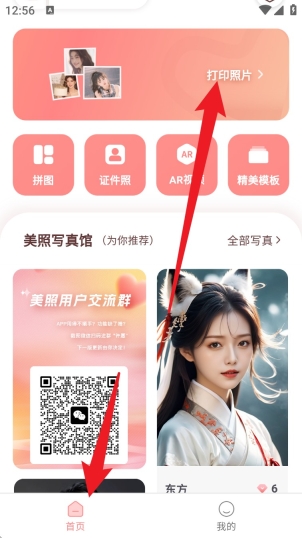 4. 返回首页后,点击「打印照片」模块,进入打印操作界面,可选择本地相册中的照片,也支持拼图、证件照等多种格式。
