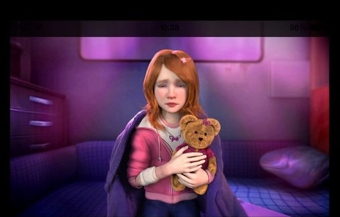 点击床边的行李箱,把它移开后,能看到一个柜子,柜子里似乎有东西,打开柜子一看,里面有个小女孩。