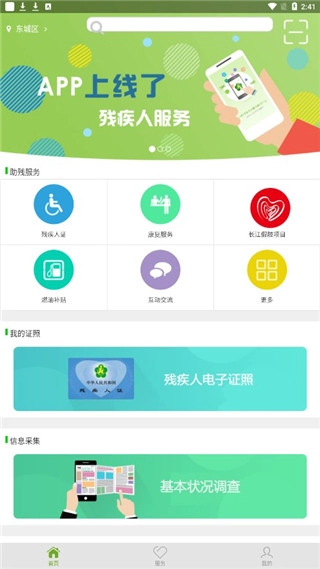 打开残疾人服务App后,在首页就能看到多种服务功能。