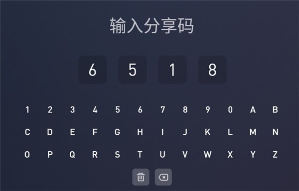 打开蚂蚁市场,找到顶部的分享码入口并选中,然后按下遥控器的确认按钮。
