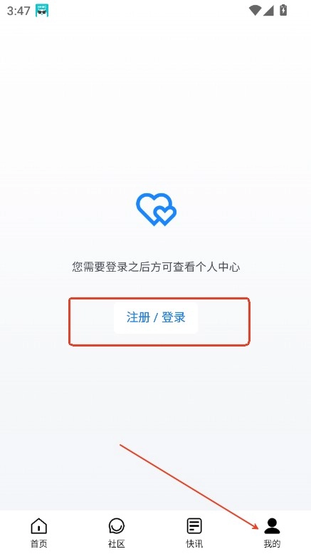 进入我的,点击登录注册