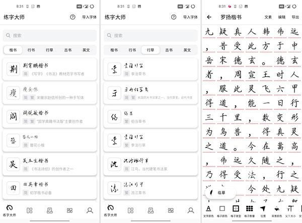 这里会为我们提供丰富的字体资源,不管是楷书、行书、草书、篆书等,我们都能依据自身需求挑选不同的字体来练习。
