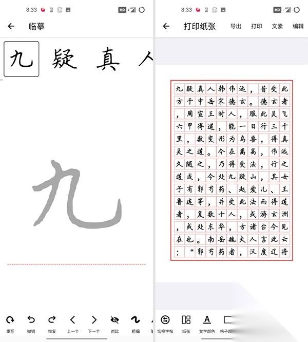 选好钟意的字体后,接下来就得琢磨怎么借助App练字了。主要有两种方法:一种是直接在屏幕上临摹,另一种是打印出来当作字帖练习。