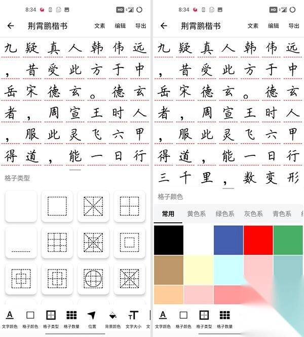 第一种方法,既然是练字,那肯定得用手握着笔来书写,而不是只用手指比划,所以可以购买电子笔或者外接电子写字板来进行操作。在开始临摹之前,你可以自行设置格子的颜色、类型、数量以及文字的颜色等参数。