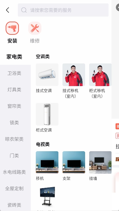 选择服务类型:在首页挑选所需的服务类别,例如“家具安装”。
