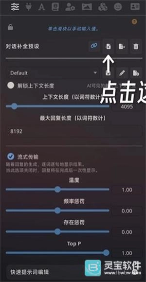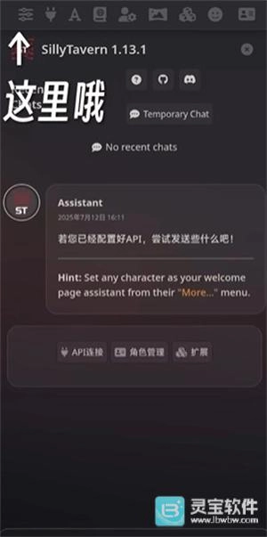 首先,请确认你已经获取到所需的角色卡预设文件,随后点击屏幕左上角的设置选项。