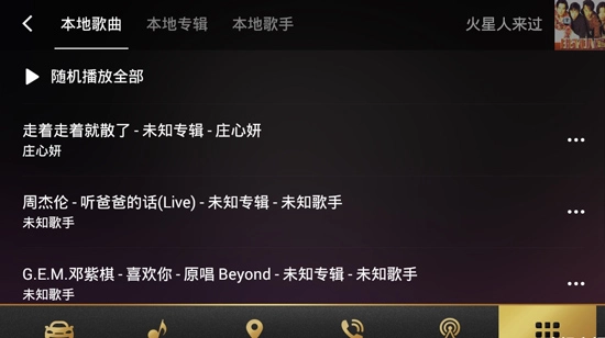 首页-本地音乐是当前车机的音乐列表,即便未登录QQ同步,也能直接收听。
